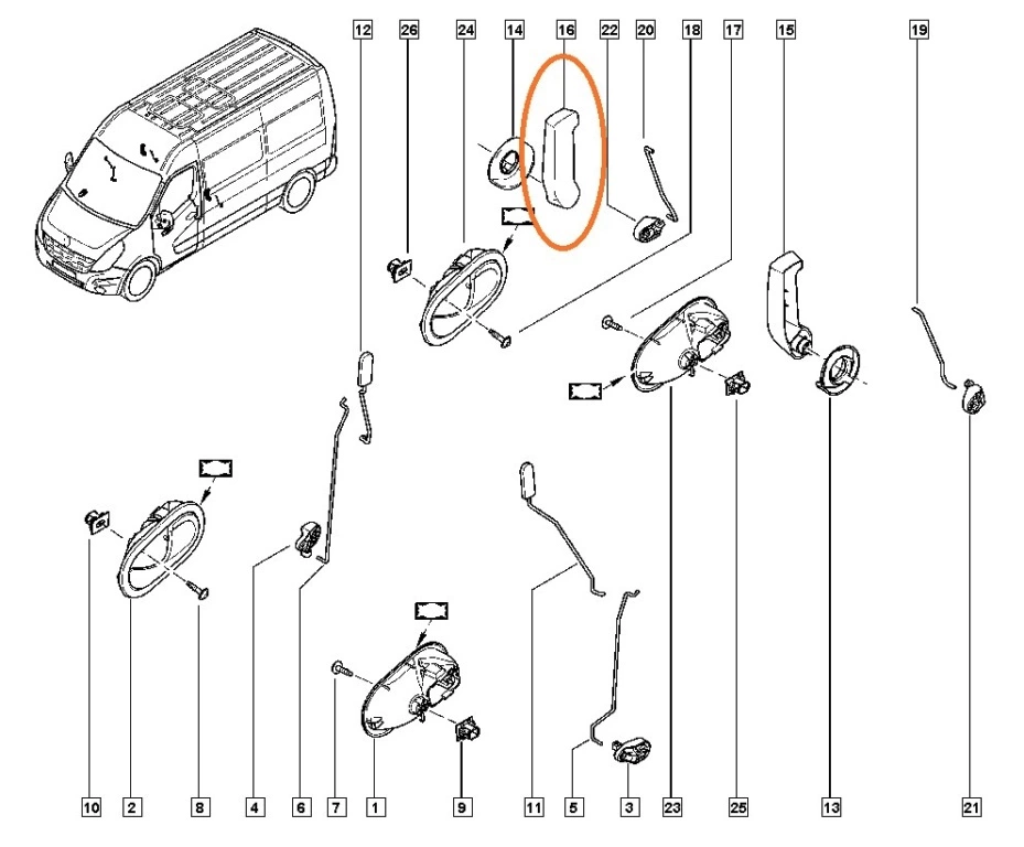 Ручка задней двери внутренняя Opel Movano III (2010-.....) 8267000Q0A,82670-00Q0A,8200766676,FT94405