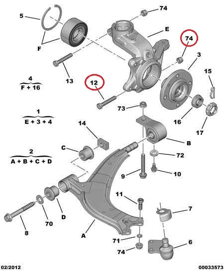 Болт + гайка крепления шаровой опоры Citroen Berlingo M59 (2003-2008), 692396, 362230