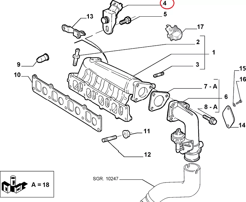 Датчик давления наддува Fiat Doblo (2005-2009) 1.3Mjtd, 55206796, 46811235, 8200155613, 15019