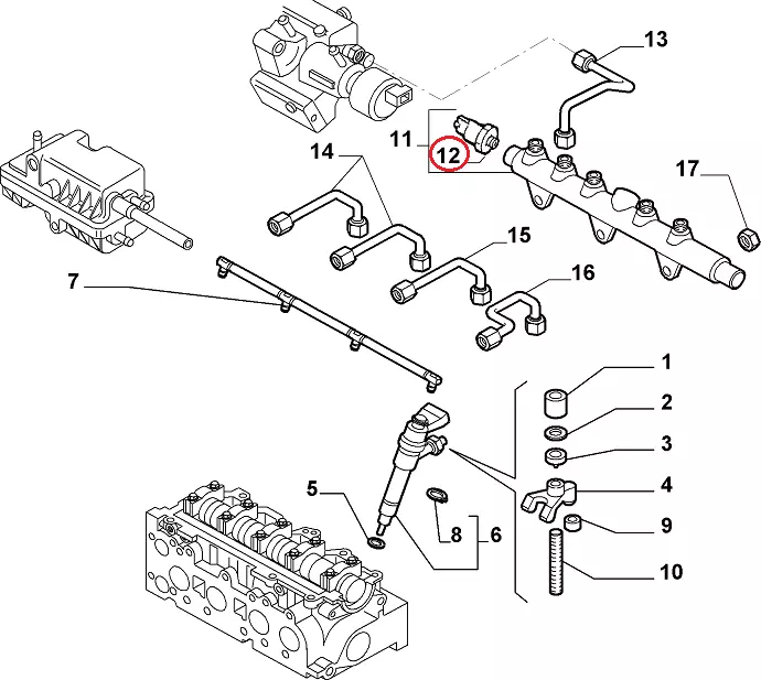 Датчик давления топлива Фиат Добло (2005-2009) 1.9Mjtd, 55207677, 1920SG