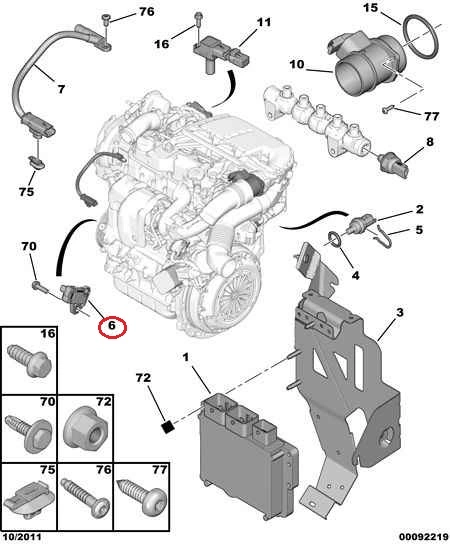 Датчик коленвала Ситроен Джампи 3 (2007-.....) 1.6HDi, 1920PW, 9664387280, 9664387380, 79288