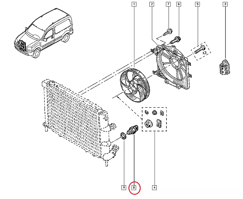 Датчик включения вентилятора радиатора Рено Кенго (1997-2007), 7700782503, TS1292