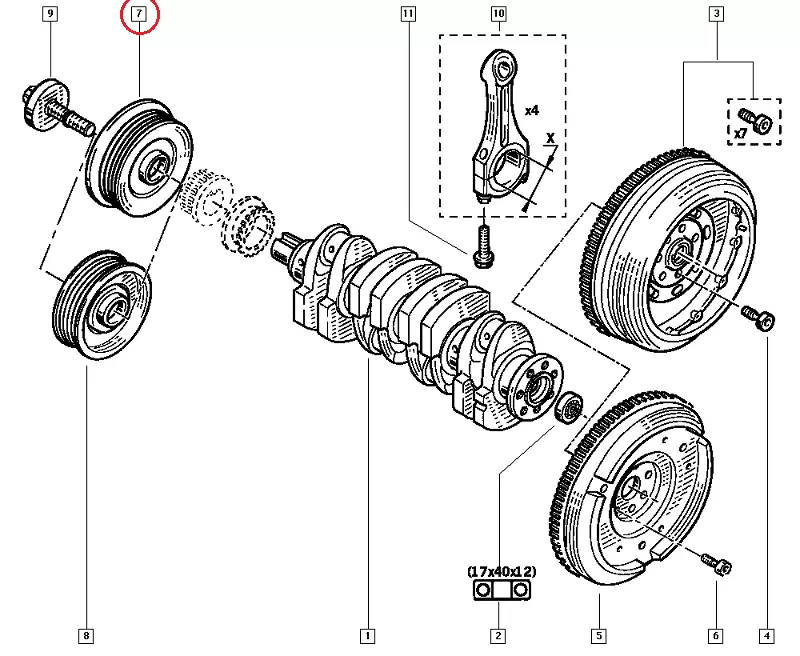 Демпферный шкив коленвала Nissan Interstar (2003-2010) 2.2/2.5DCi, 8200802666, 8200458171, 10612