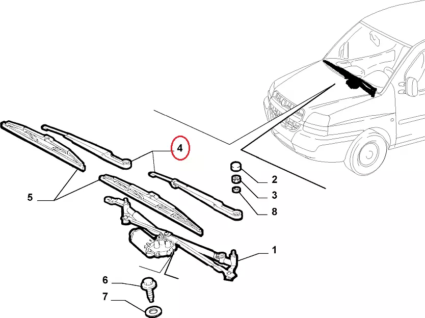 Держатель дворника Fiat Doblo (2005-2009), 51714017, FT93316