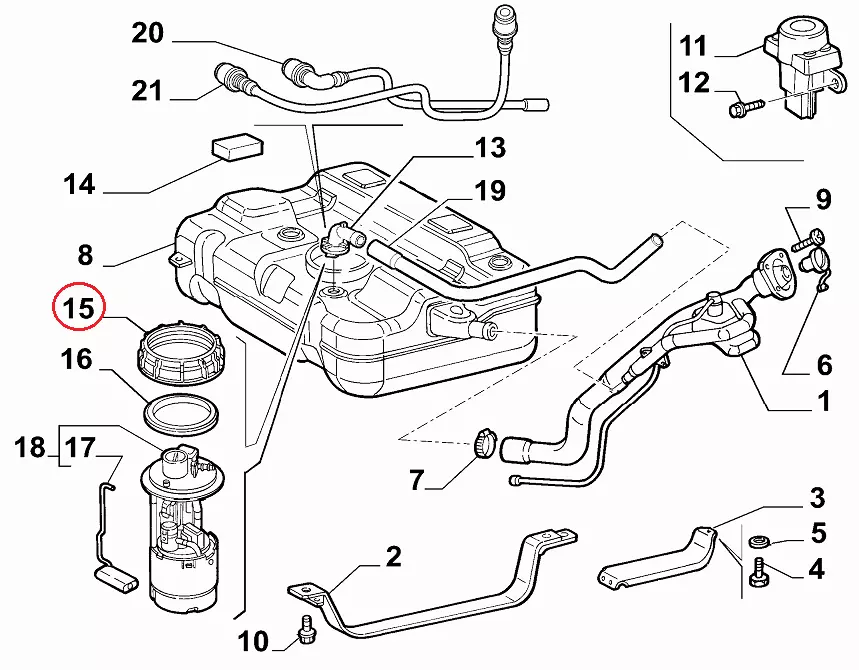 Гайка датчика уровня топлива Fiat Doblo (2000-2005), 46523405, FT94642