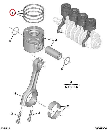 Кольца поршневые (STD) 75 мм (3-1.95-2.5 мм) Пежо Партнер М59 (2003-2008) 1.6HDi, 0640V8, 800054910000