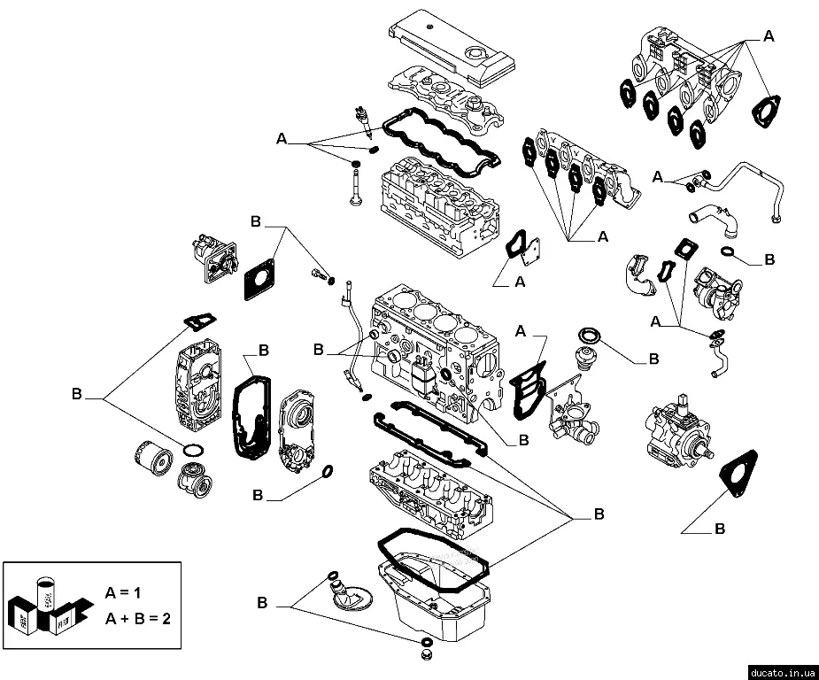 Комплект прокладок двигателя (без прокладки ГБЦ) Fiat Ducato 230 (1994-2002) 2.8 jtd 71728339,71718011,0197 Z4,0197 Y9,HW150170