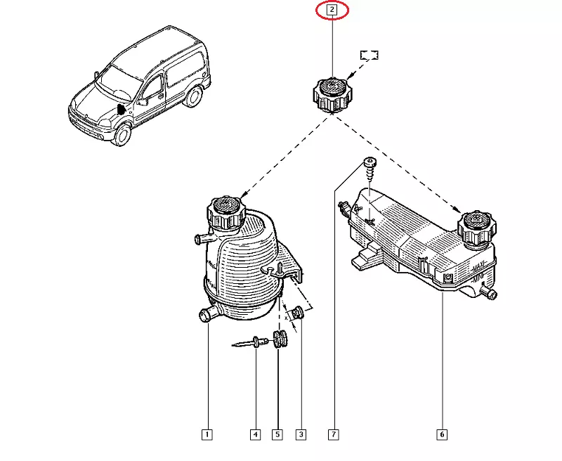 Крышка расширительного бачка Nissan Kubistar (1997-2008), 2151600QAA, 2151600QAB, 700210755