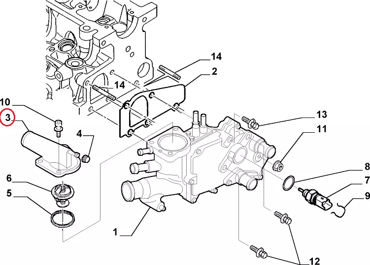 Крышка термостата Fiat Scudo 220 (2004-2006) 2.0JTD, 9645055280, 9641338780
