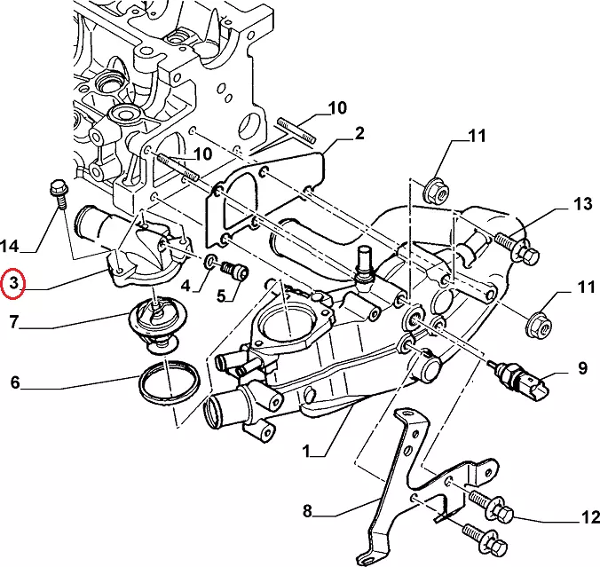 Крышка термостата Фиат Скудо 220 (2004-2006) 2.0JTD, 9645055280, 9641338780