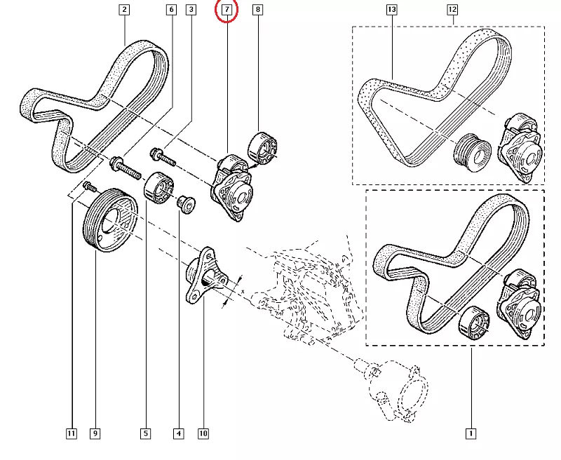 Натяжной ролик ремня генератора Nissan Primastar (2000-2011) 2.5DCi, 1195500Q0B, 1195500Q0D, 8200714514