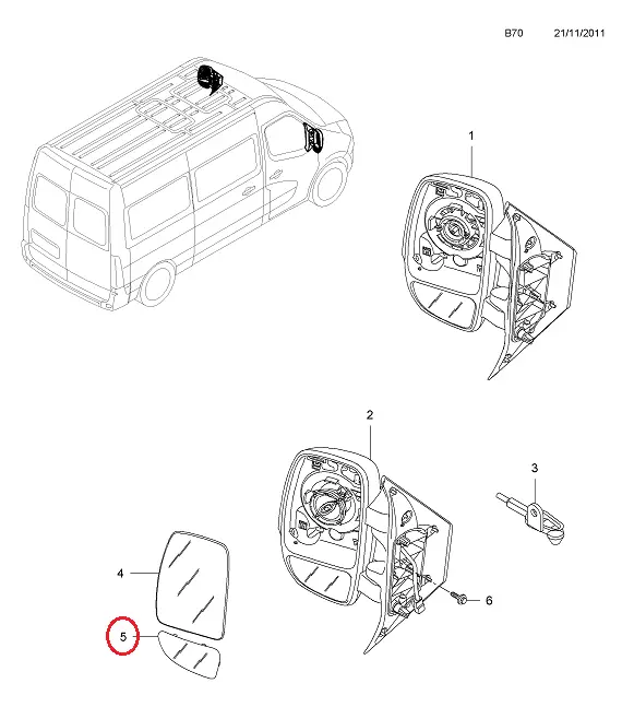Нижний вкладыш зеркала Nissan NV400 (2011-.....) простой, 963021976R, 963016903R, 60N1545M / 60N1555M