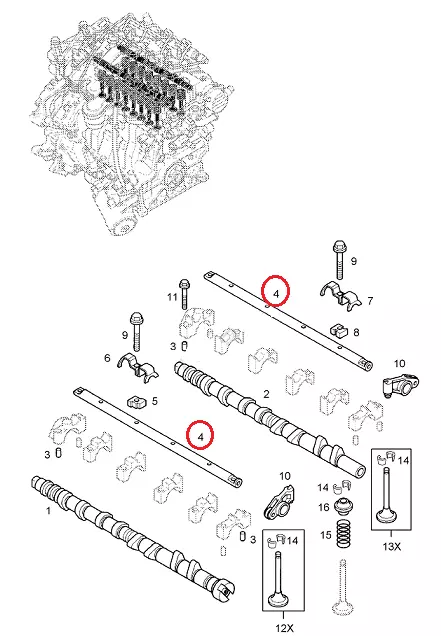 Ось коромысел клапанов (вал рокеров) Nissan Interstar (2003-2010) 2.2/2.5DCi, 1325200Q0B, 4506073, 9201507, 8200754011
