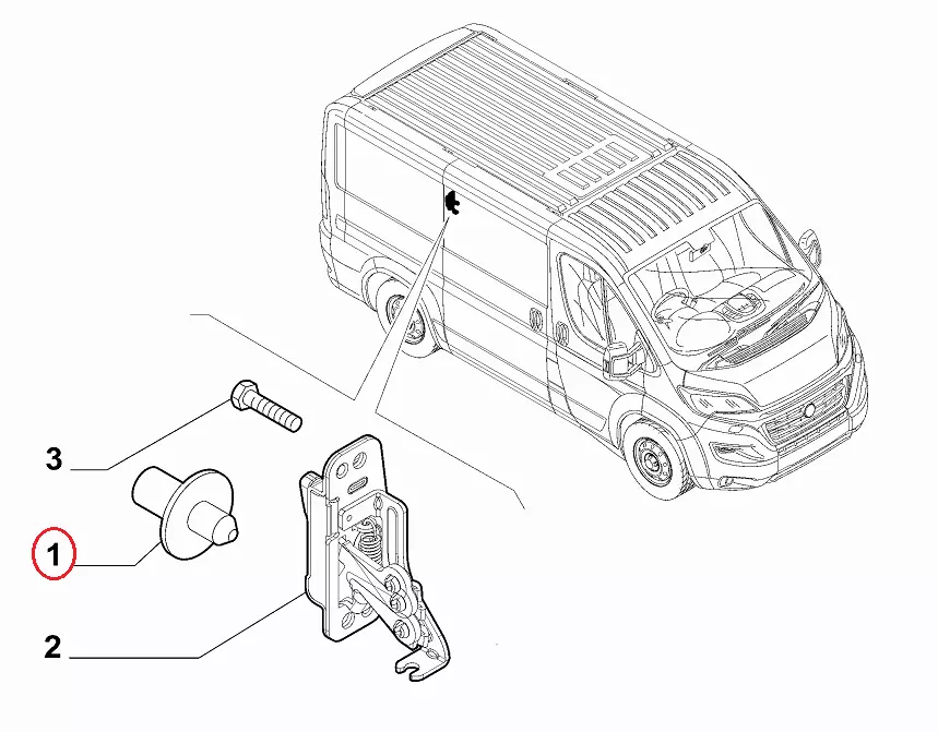 Палец верхнего замка сдвижной двери Fiat Ducato (2014-.....), 1344903080, 1375874080, MG41/59