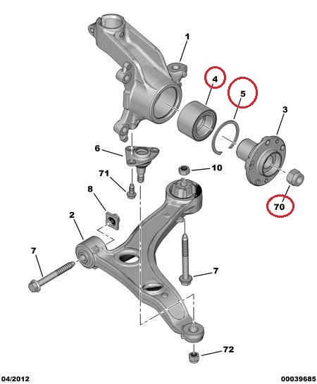 Передний ступичный подшипник Citroen Jumper IV (2014-.....), 332671, 1606374680, 334556, 373927, H1C021BTA