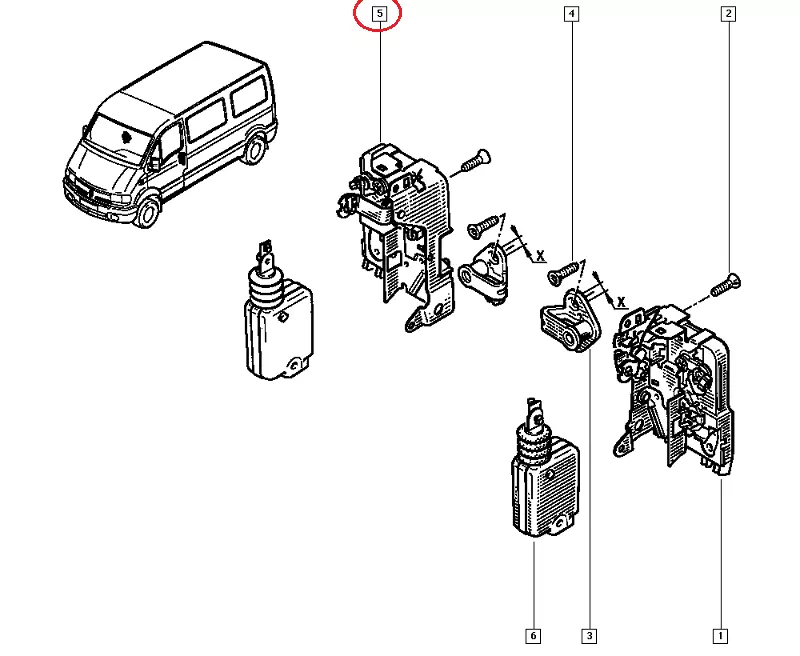 Передний замок правой двери Nissan Interstar (2003-2010) механический, 7701046146, 500314256