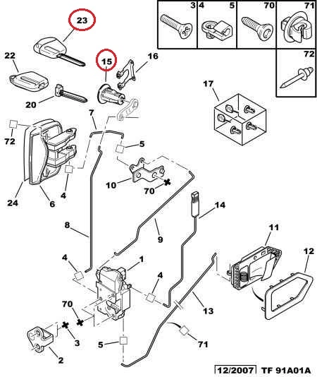 Передняя личинка замка двери Citroen Berlingo M49 (1996-2003), 9170CW, 9170CX, FT94152