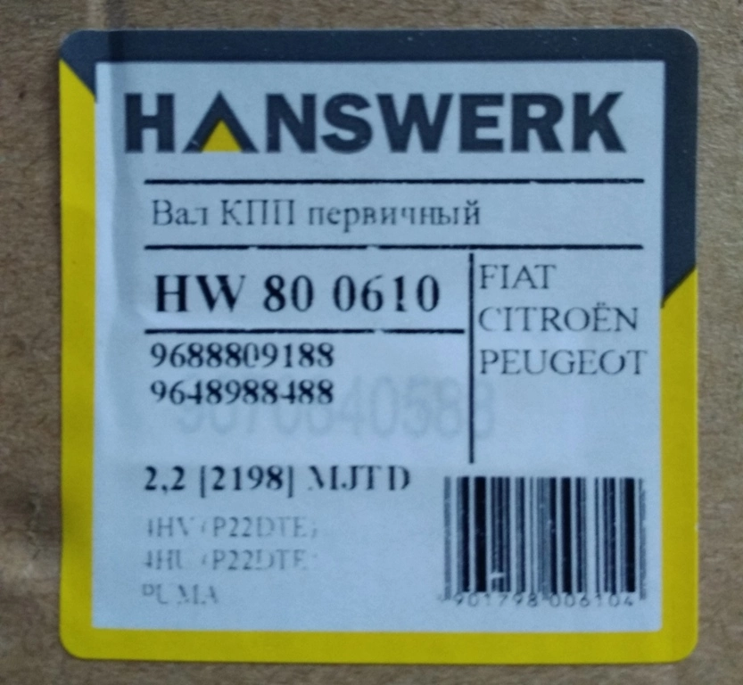 Первичный вал MLC (5 ступенчатая КПП) Fiat Ducato 250 (2006-2014) 2.2D 2311W1,9648988488,9688809188,HW800610