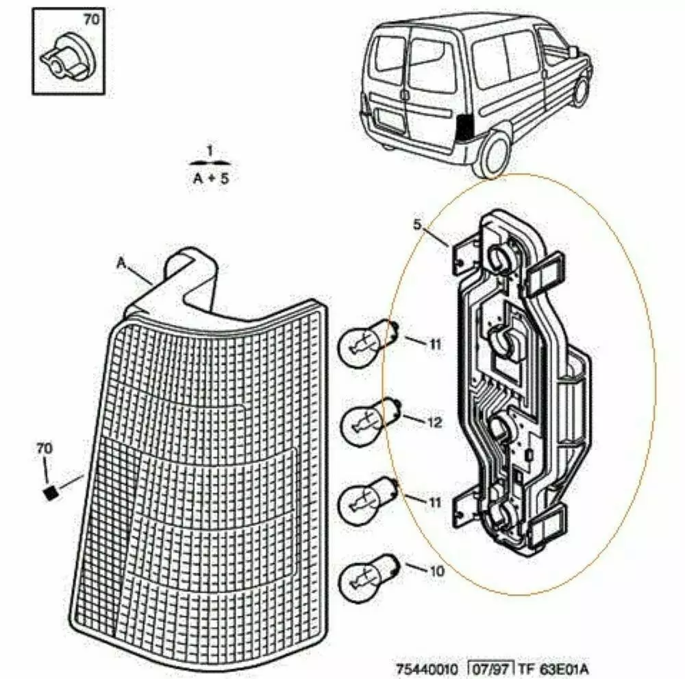 Плата заднього ліхтаря (патрон лампи) Peugeot Partner M49 (1996-2003) 634679,6346.79