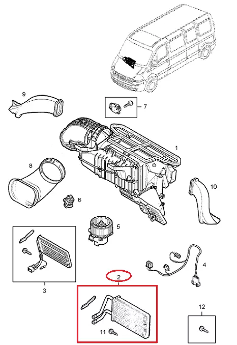 Радиатор печки Opel Movano (2003-2010), 4415542, 93181454, 27115-00QAF, FT55276041N8-2