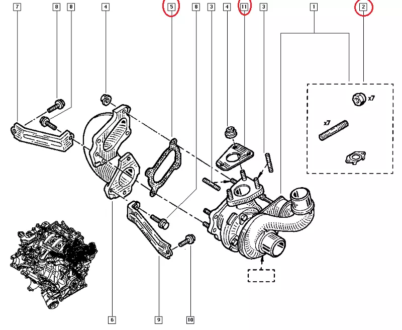 Ремкомплект турбины Рено Мастер 3 (2003-2010) 2.5DCi, 7701473054, 7700312873, 8200004980, KT220015