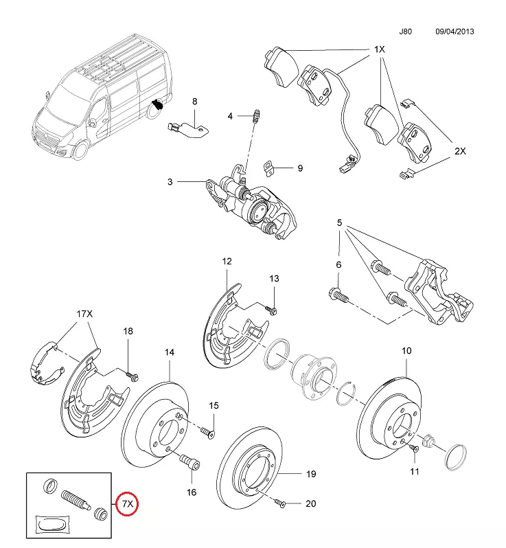 Ремкомплект заднего суппорта Opel Movano B (2010-.....) спарка, D42188