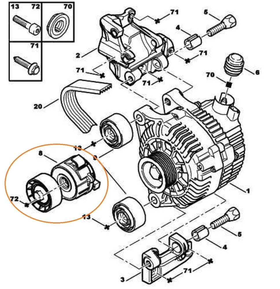 Ролик ремня генератора з механізмом Citroen Berlingo M59 (2003-2008) 1.6hdi 1611424880,5751F3,9654127380,APV2463