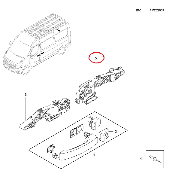 Ручка боковой правой двери Opel Movano B (2010-.....) внутренняя часть, 4420189, 4502754, RWS1418