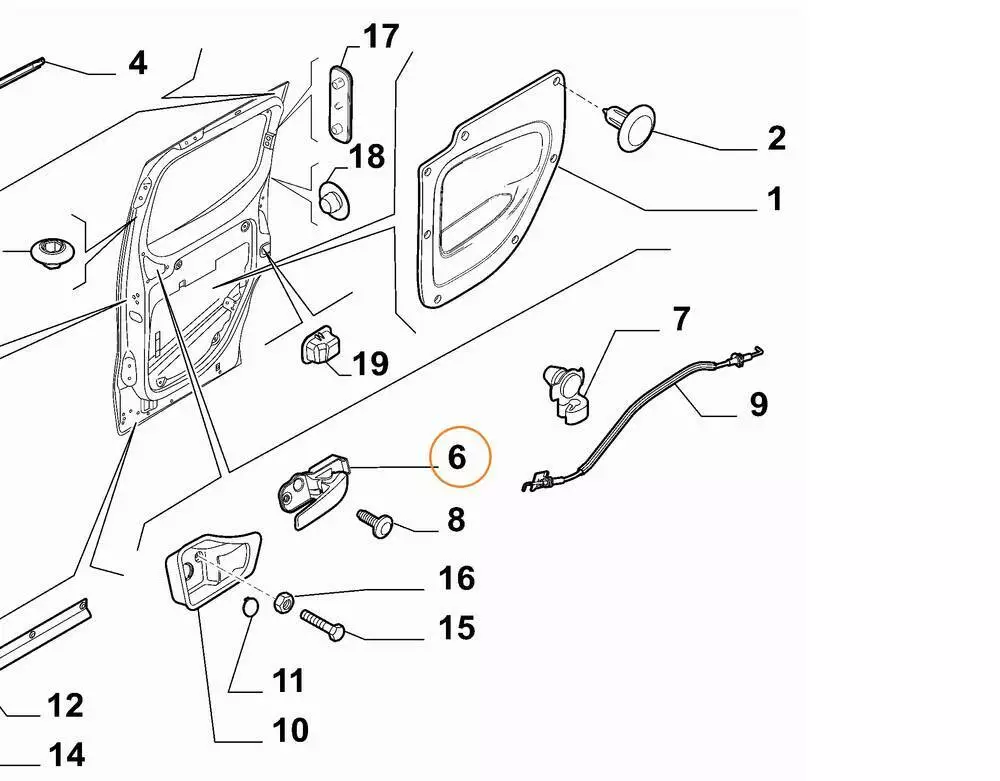 Ручка передньої лівої дверки внутрішня Fiorino - Quo (2007 -.....) 735460745,735460746,735464672,9101HC