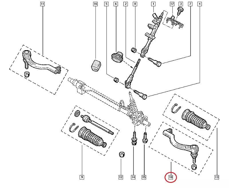 Рулевой наконечник Ниссан Интерстар (2003-2010) левый, 7701470363, MGZ308001