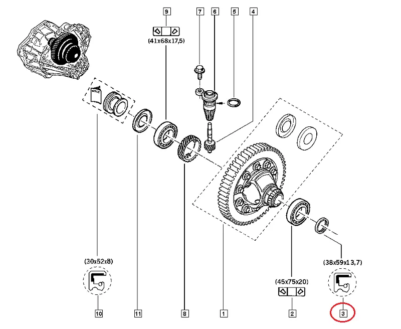 Сальник левой полуоси Ниссан НВ400 (2011-.....) 2.3CDi, 383428H500, 8200172227, G3R001