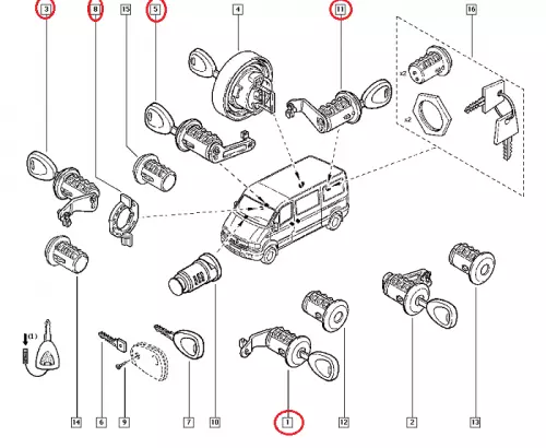 Комплект сердцевин замков Renault Master III (2003-2010), 7701470952, 7701475688, YSM5RN25