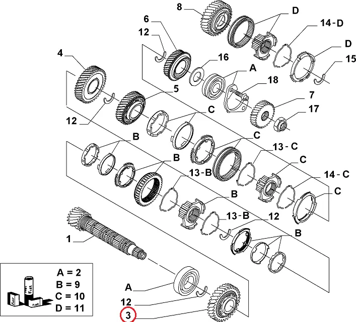 - Количество зубцов смежной шестерни: 11 шт.