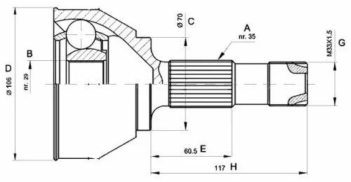 Шрус наружный на Фиат Дукато (2014-.....) 3.0JTD, 29х35 шлицов, 71771176, G1F058PC