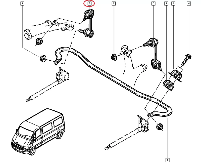 Стойка стабилизатора Ниссан Интерстар (2003-2010) передняя правая, 5461800QAA, 5461800Q0C, 26RN1101