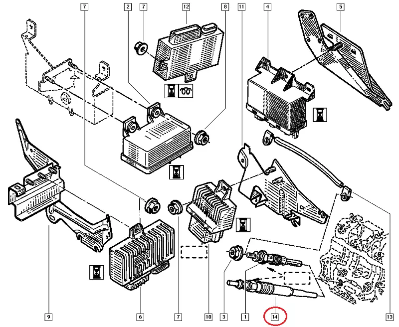 Свеча накала Renault Kangoo (1997-2007) под защелку, 8200787721, 8200423227, 7700100635, 11721922