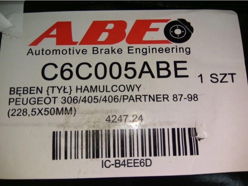 В конце производства барабаны статически и динамически балансируются и проходят строгий контроль качества. Тормозные барабаны от ABE соответствуют самым высоким стандартам качества и обеспечивают полную взаимозаменяемость по размерам с оригинальными запчастями.