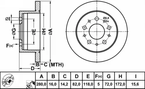 Тормозной диск передний не вентилируемый R15 Citroen Jumper (1994-2002), 4246J8, 4249H6, 1606308980, FT31032