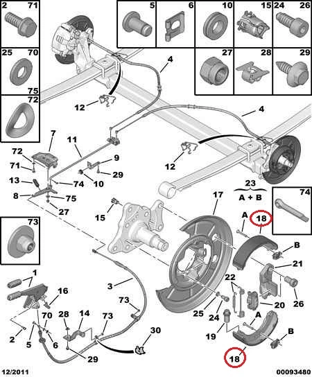 Колодки задние Пежо Боксер 4 (2014-.....) стояночного тормоза, K-746