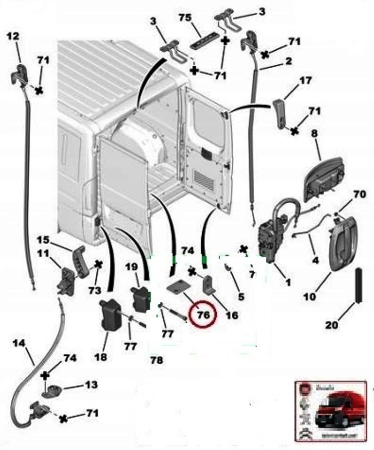 Упор задней двери нижний (стопор, фиксатор, штифт) Fiat Ducato (2014-.....) 1346548080,FT95421,FT95490,7235.C5