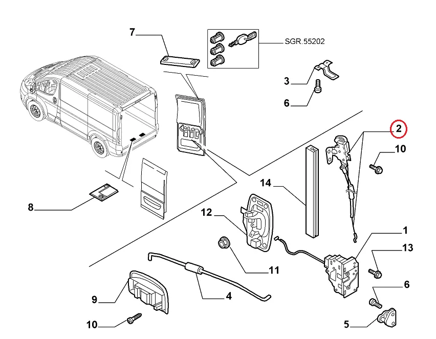 Верхний замок задней правой двери Фиат Дукато (2014-.....), GP1362411080