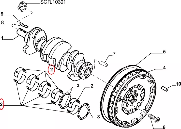 Вкладыши коленвала коренные 0,30 (1-й ремонт) Фиат Скудо 220 (2004-2006) 1.9D, 2.0JTD, 111393, H1057/5 0,30