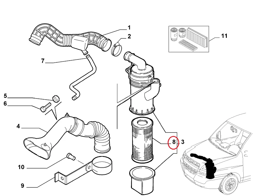 Воздушный фильтр является очень важным элементом системы впуска двигателя. Состоящий из корпуса и сменного фильтрующего картриджа воздушный фильтр расположен на линии подачи воздуха к впускному коллектору двигателя. Его задача - очистить воздух, необходимый для процесса сгорания, происходящего в двигателях внутреннего сгорания, от загрязняющих частиц, таких как песок, пыль или сажа, что снижает механический износ двигателя, обеспечивает высокий уровень мощности двигателя и подавляет шум всасываемого воздуха.