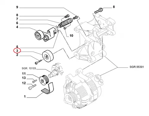 Вспомогательный ролик генератора Fiat Scudo 220 (1995-2004) 1.9D/TD, 2.0JTD, 9618888580, 9633315180, VELC829