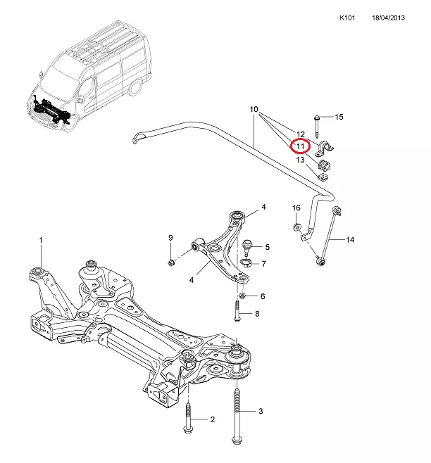 Втулка переднего стабилизатора Opel Movano B (2010-.....), 4419323, 93197327, FE44728