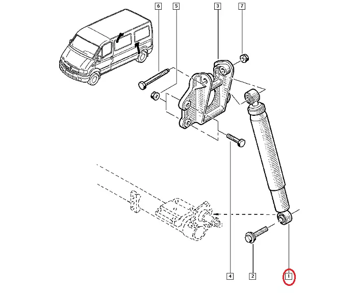 Задний амортизатор Ниссан Интерстар (2003-2010) газомасляннный, 5621000QAD, 5621000QAE, 5621000QAG, 73356