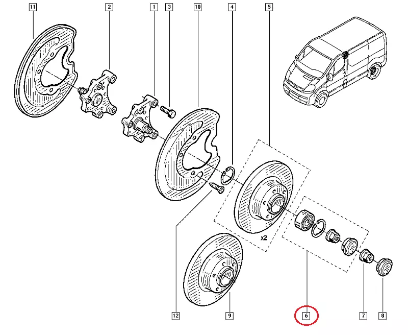 Задний подшипник ступицы Nissan Primastar (2000-2011), 4321000QAC, 3822500QAA, 4326200QAC, 200419
