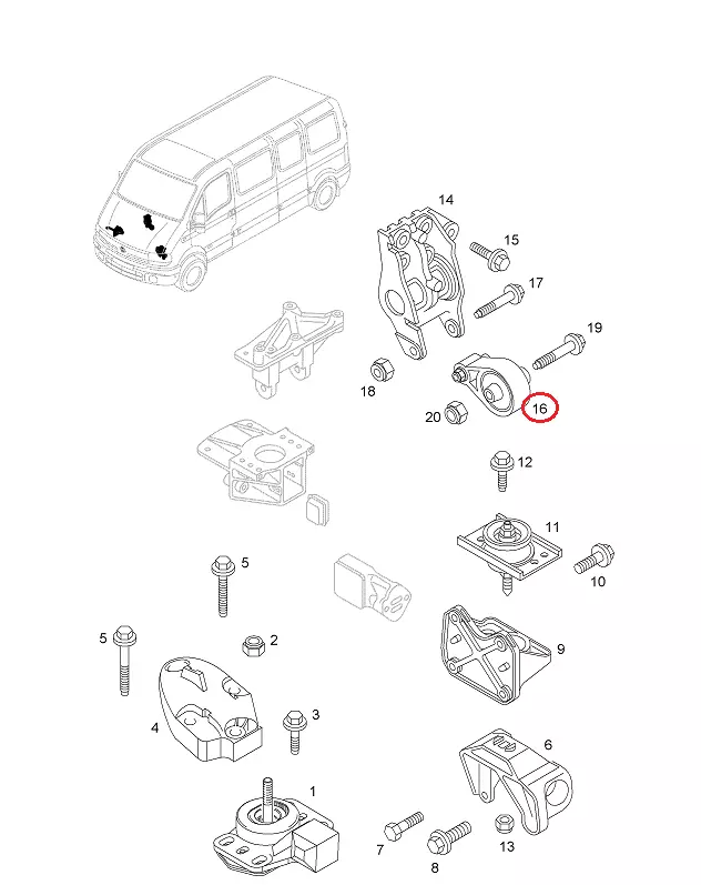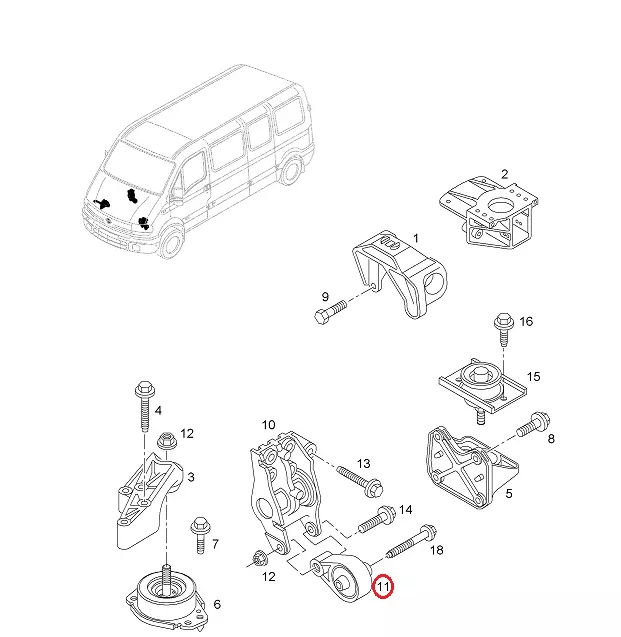 Задняя подушка двигателя Opel Movano (2003-2010) 2.5/3.0DCi, 4402612, 9110612, 10868J