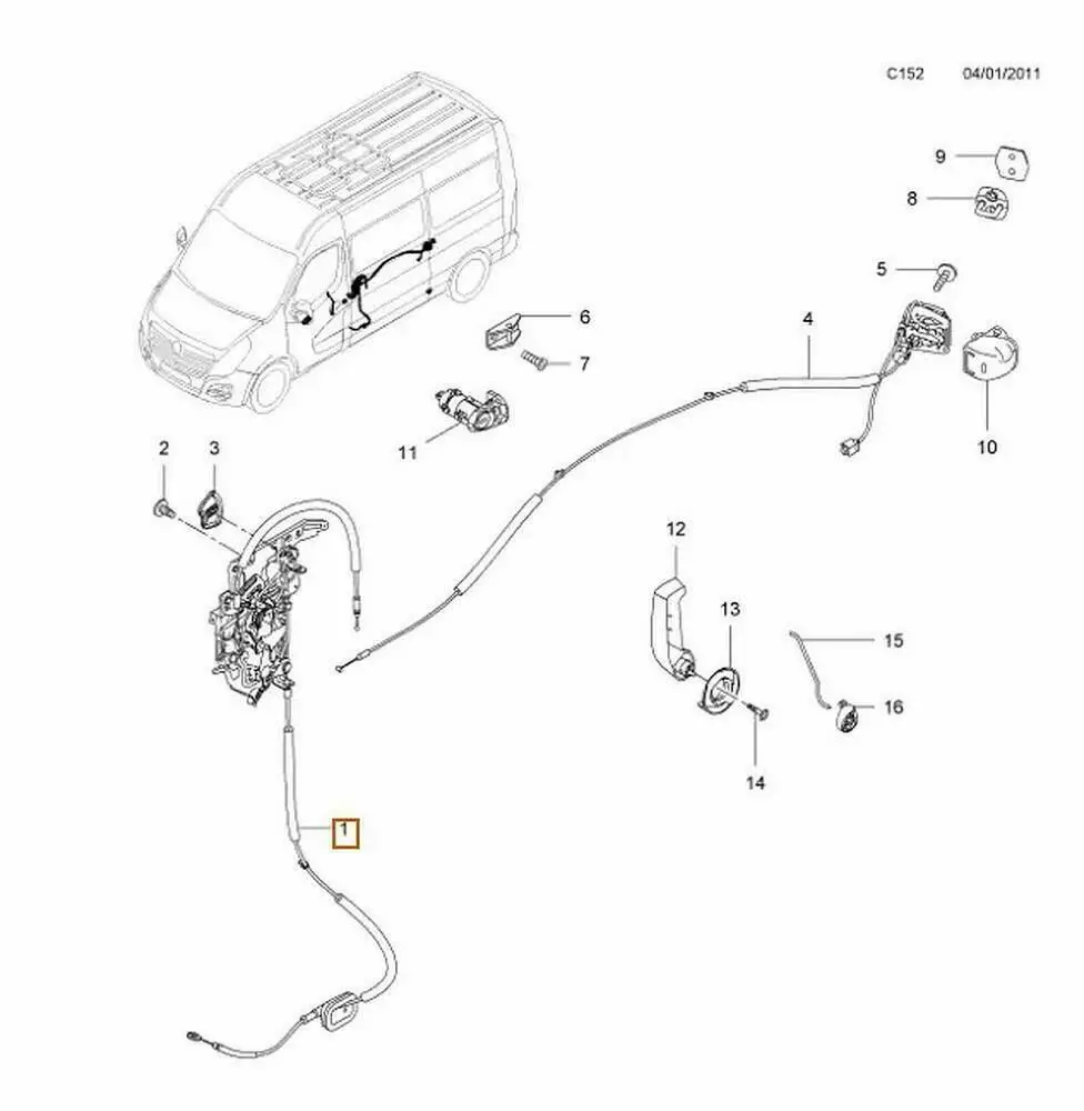 Замок (механізм) бічних правих зсувних дверей внутрішній Opel Movano (2010-……) 95527349,826703236R