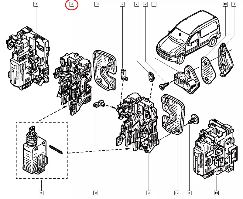 Замок передней правой двери электрический Renault Kangoo (1997-2007), 8200147150, 05.0068